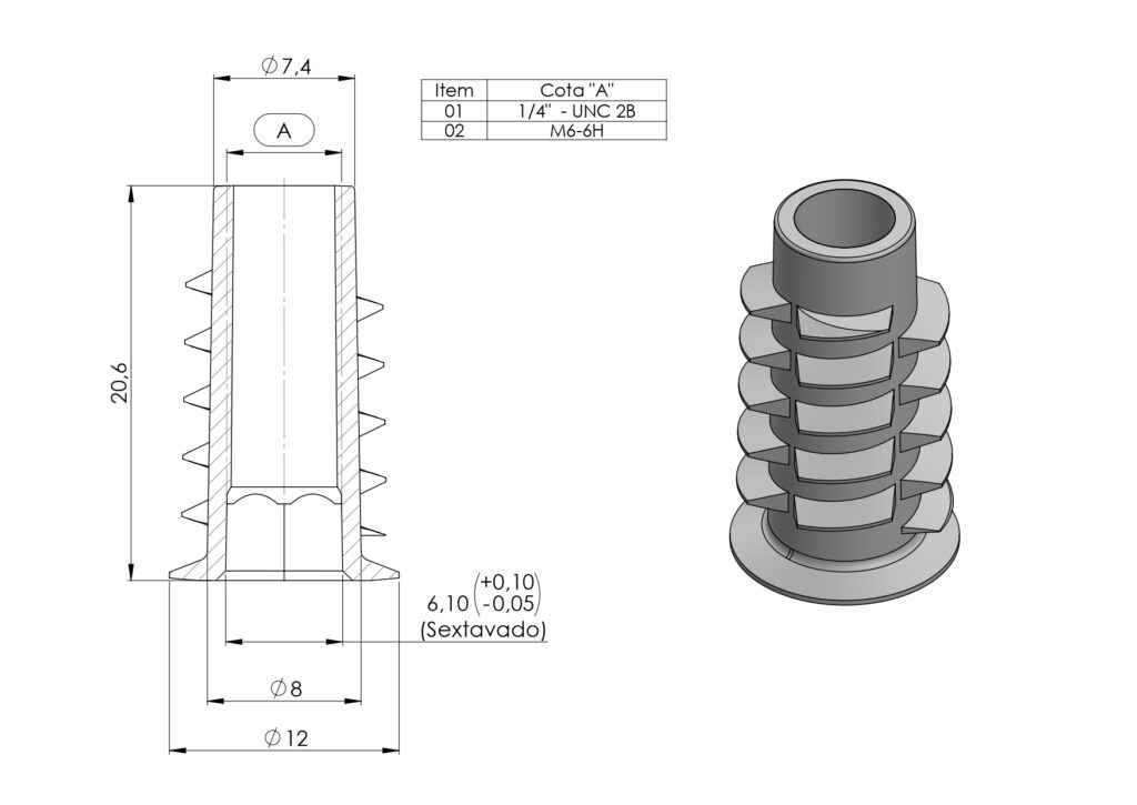 BUCHA AMERICANA M6X20mm G2